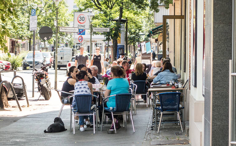 Nicht nur in der Bleibtreustraße geraten Restaurants durch Baustellen und strenge Auflagen für Außengastronomie in Existenznot. Das Bezirksamt pocht auf freie Gehwege. Gleichzeitig sind diese blockiert durch Sperrmüll, E-Roller und Falschparker:innen, was insbesondere für mobilitätseingeschränkte und blinde Menschen oder Personen mit Kinderwagen ein Problem ist.