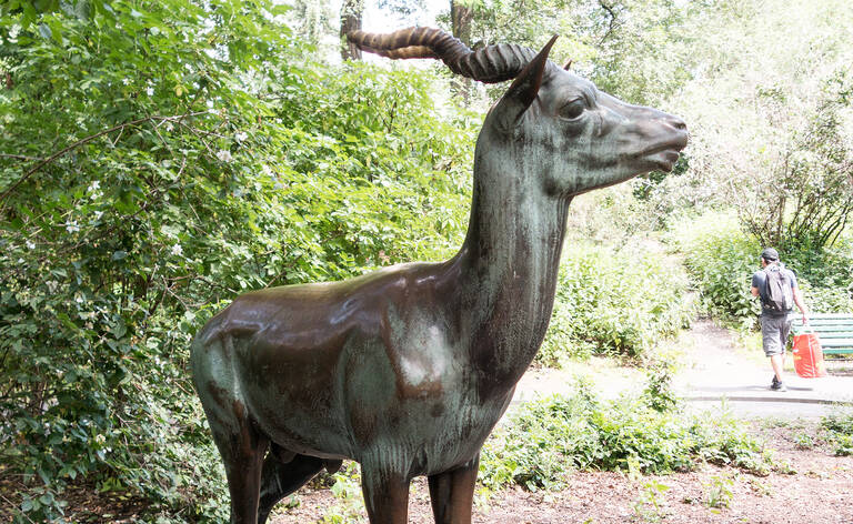 Das Original überdauerte den Krieg nicht. 1944 verschwand die Antilope, vermutlich wurde sie eingeschmolzen. Die Antilope, die heute neugierig aus dem Dickicht schaut, ist ein Neuguss von 1955.