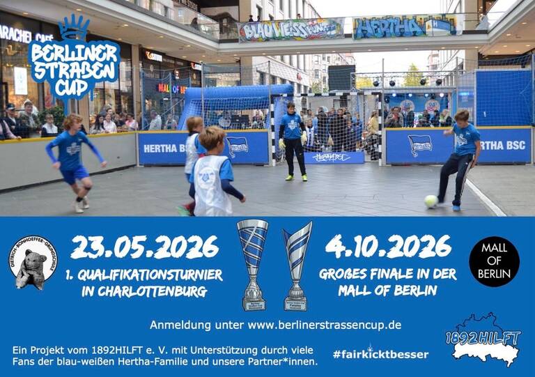 Der Anpfiff erfolgt in der Regel gegen 10 Uhr. Wer sich auf den Berliner Asphaltplätzen beweist und durch faires Verhalten punktet, darf sich auf einen besonderen Abschluss freuen. Das große Finale wird als blau-weißes Highlight am 4. Oktober 2026 in der Mall of Berlin ausgetragen. Dort verwandelt sich das Einkaufscenter in eine Fußballarena, in der die besten und fairsten Teams der Stadt den Pokal unter sich ausspielen.